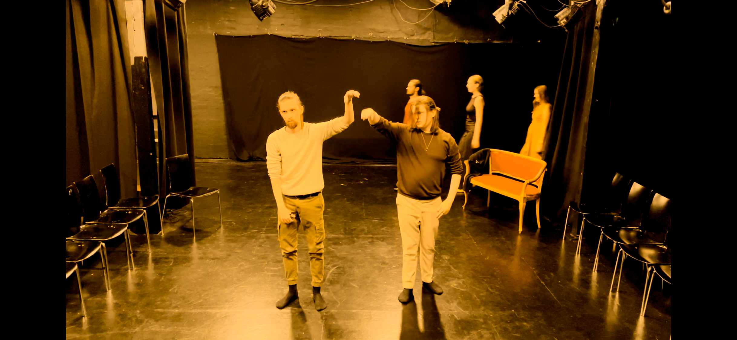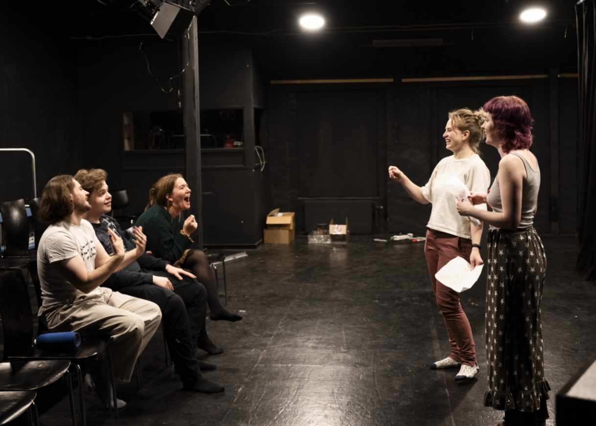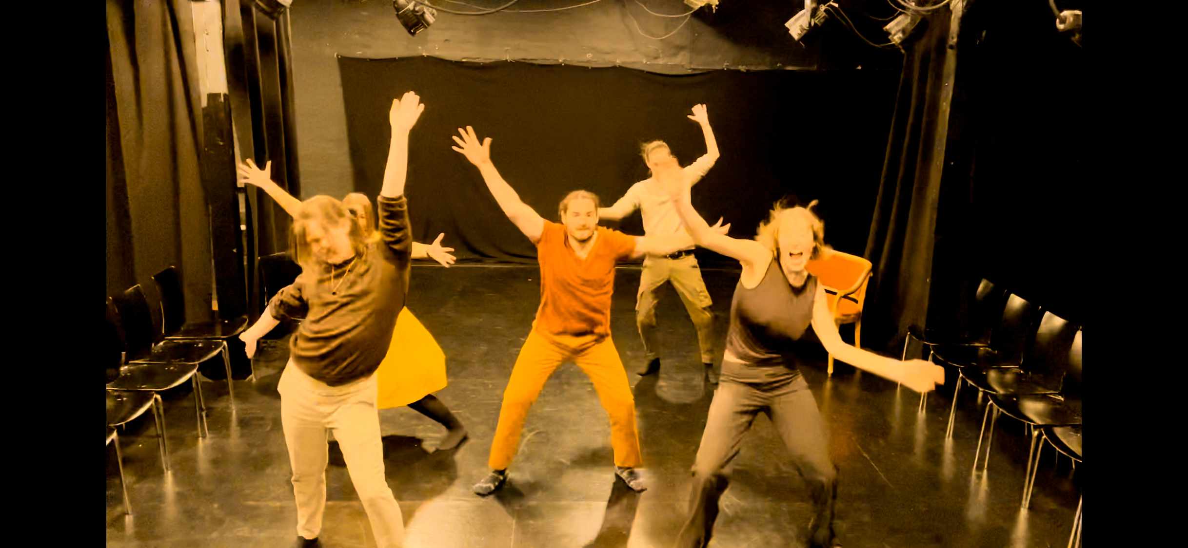 Så tager vi fat i dagens tema, det kan være: Hvordan spiller man en karakter der er 80% menneske og 20% dyr, teknikker til at huske replikker, bevæg din krop som en farve, eller hvad er dit mål i en scene?
