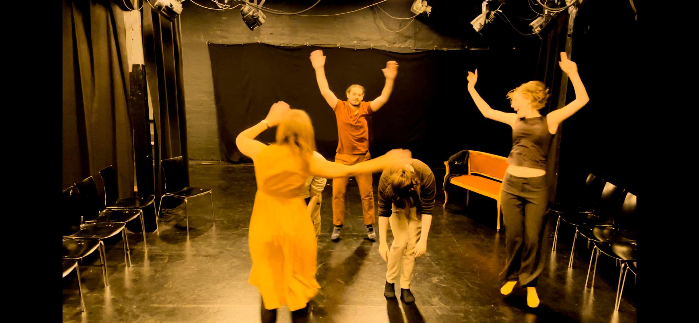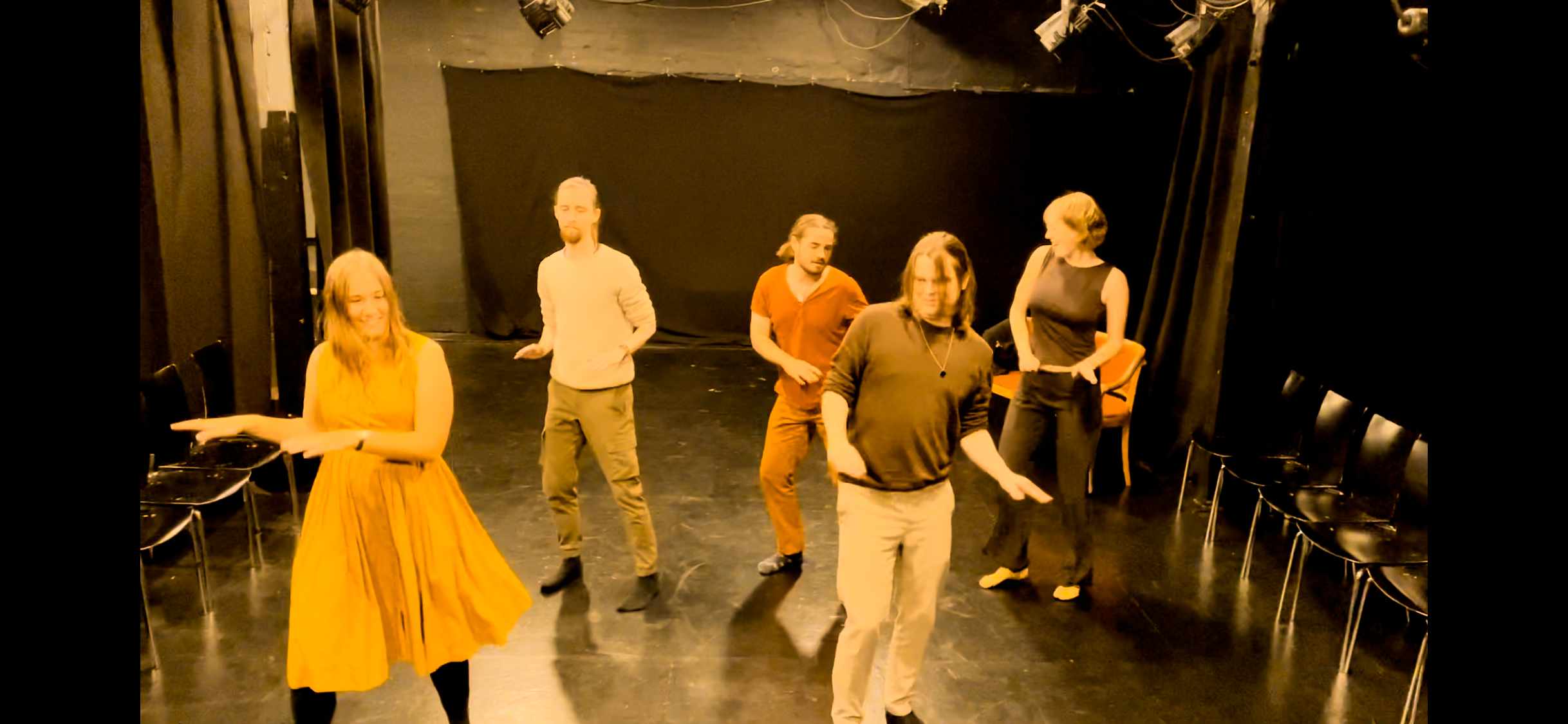 Fokus på øvegangene, var at skabe en dans. Folk blev delt ud i mindre grupper for at lave en lille dans, som blev sat sammen til en større dans.